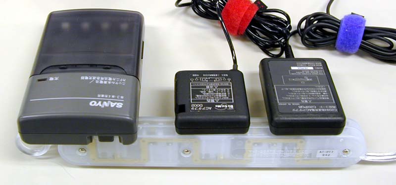 まず「スリム両面タップ」。こいつは秀逸。「スリム」をうたっているが、小ささや軽さが問題ではない。普通のタップではACアダプタは互いに干渉するため、並べて装着することが不可能。しかし口が裏と表に交互に存在するこのタップならば、ACアダプタばかりを5つ接続することも可能。さらに、アースはできないものの、3Pのコンセントも接続可能。まさにハイテク野郎のためにタップ。