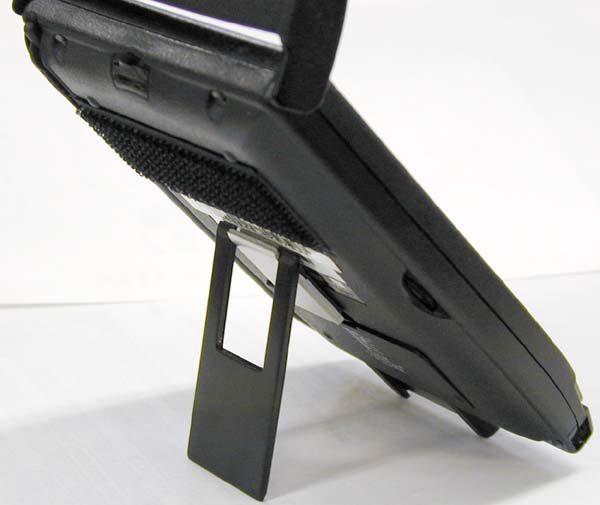 そして俺はこの製品のコンセプトを超えてみた。そう、携帯電話ではなく、俺の愛用のWorkPadを立たせてみた。「携帯電話以上の過重には耐えられない」と注意が書かれているが、果敢に挑戦。見事、自立。さすがジュラルミン製。これならば照明の映りこみの少ない角度で、WorkPadを閲覧できる。すごい、これならばヤツも満足だ。そして俺はWorkPadを操作する…くぁっ! デスクとWorkPadのあいだの摩擦力が軟弱で、置いたままペン操作するとWorkPadが滑って逃げていくっ! こ、ここまではヤツも予想はしているまい…
