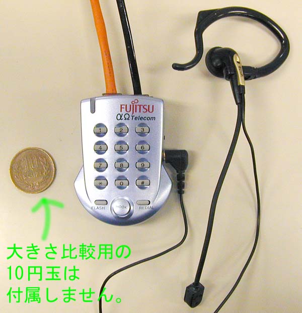 MyPhone+はつまりヘッドセットのついた小型の電話機である。ちゃんとダイヤルパルスとプッシュトーンの両方に対応している。携帯電話などのイヤホンマイク端子とも互換性があるので、付属のヘッドセットだけでなく市販のイヤホンマイクも使用可能。早速使ってみた。まず自分のPHSに電話し、留守録に吹き込むことでマイクの音量確認。うん、オッケー。そのあとおもむろに他の人へ電話。音の聞こえない電話は非常に失礼なので、通常の電話機も同時にスタンバイ。そして電話…ぬ、ちょいと音の聞こえが悪い。やばい、やっぱりMyPhone+、ダメか? と思って通話中に通常の受話器と素早く交代。ぬ? やっぱり聞こえが悪い。ということはもともと電話の声が小さかったのかっ! 余計な緊張して受話器を汗でジットリさせてしまったではないかっ!