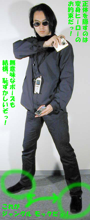 やあ良い子のみんな、元気かな。ボクがモバイル戦士さ。サングラスをしているのは正体がバレないようにするためさ。さすがに23歳にもなるといろいろ恥ずかしいこともあるんだ、わかってくれ。さて。今週はこのボク、モバイル戦士の7つの秘密をみんなに教えちゃおう。今日は手始めにボクの愛用している靴「ジャングル モック」を紹介するゾ。