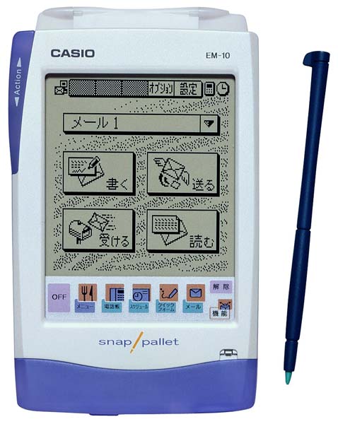 デジタル携帯電話接続ケーブルが標準で付属するメール端末&電子手帳。縦長の液晶画面で、ペン入力タイプ。別売の「パソコンリンクキット」を使って、PCとの連携もできる