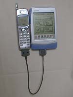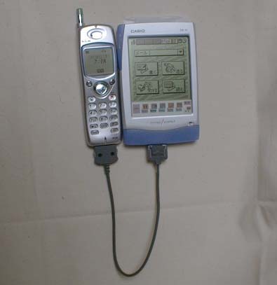 もちろんメール端末だから、携帯電話は付属のケーブルであっさり接続できちゃう。他に必要なオプションはナシ。ちなみにPDC方式の携帯電話しか利用できないので、PHSやcdmaOneは駄目。でもPDCであれば大抵の携帯電話が使えるので、それぞれのキャリアの専用端末よりもかなり柔軟。