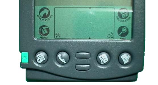 4つの物理的なボタンは、左から、「予定表」(英語版での表記は、Date Book)、「アドレス」(同Address)、「To Do」(同To Do List)、「メモ帳」(同Memo Pad)となっている。このボタンは、電源がオフの状態でも有効で、ボタンを押せば電源が入り、対応したアプリケーションが起動する。