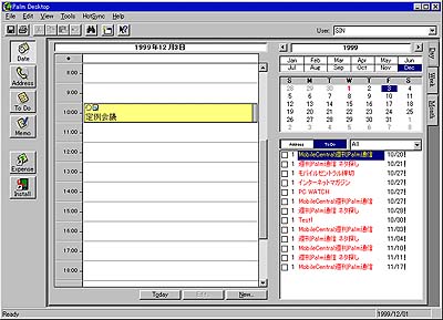 パッチにより、日本語化された英語版PalmDesktop。メッセージやメニューなどは英語のままだが、シンクロしたデータは、ちゃんと日本語表示が可能。