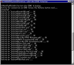 すると、バックアップ中のデータベース名などが表示されていく(画面1)。ちょっと時間はかかるが気長に待とう。なお、できれば、転送中は、パソコン側でスクリーンセーバーが動いたり(意外にCPU負荷が高いものがある)、サスペンド状態になったりしないように注意しておこう。