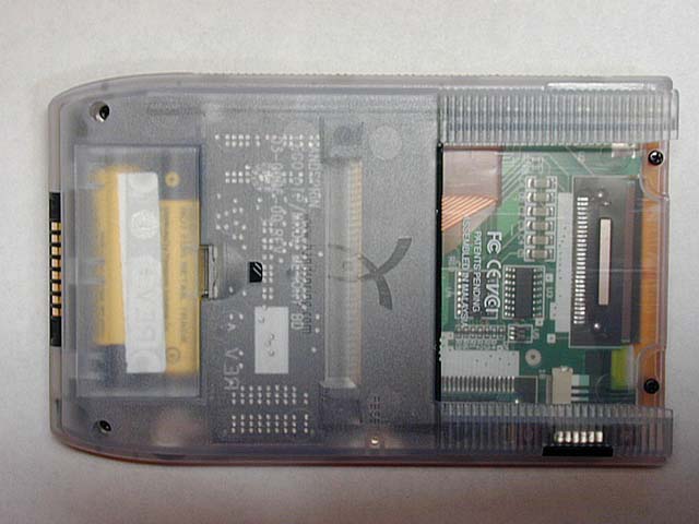 Visorの目玉であるSpringboardは、PCカードの上1/3ぐらいを切り取ったサイズのカードで、厚さは、7.5mm(Type1カードの2倍弱)程度のもの。全体がプラスチックで覆われており、カード側のコネクタはPCカード同様、直接端子が露出しないようになっている。現在のところ、8MBのフラッシュカードやバックアップカードなどが販売されており、モデムカードなどが来年出荷予定である。