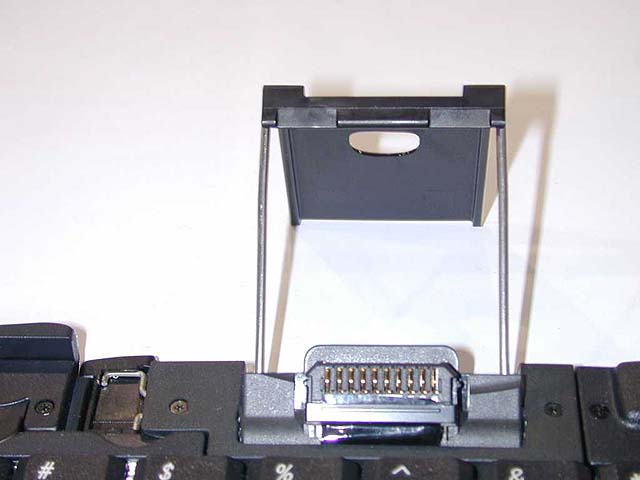 フタを開け、側面から見たところ。右側にあるのがPS/2タイプキーボードコネクタ