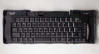キーボードの配置。畳まれた状態では、キーボードは4つの部分に分かれており、両側の赤い部分を中心に向かって動かすとキーボードが合体する。