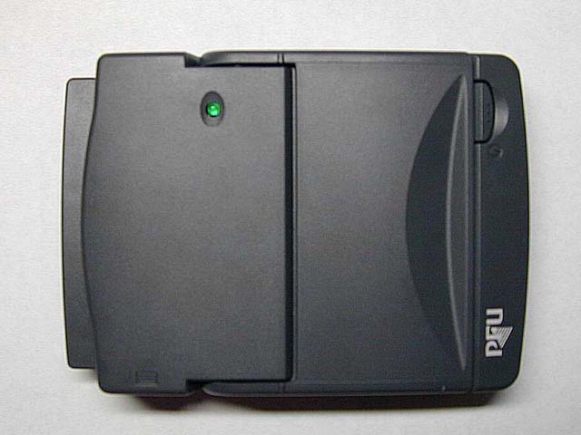 p04.jpg 背面部分。写真左側は、Palm Pilotと同じ形状になっており、Palm用のオプションを装着できる。