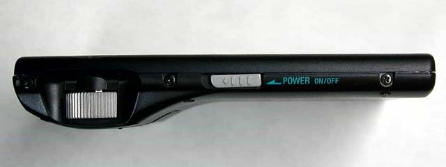 筐体左側面(上)、筐体上のボタン(下)。基本的に左手だけで操作できるようにボタン類が配置されている