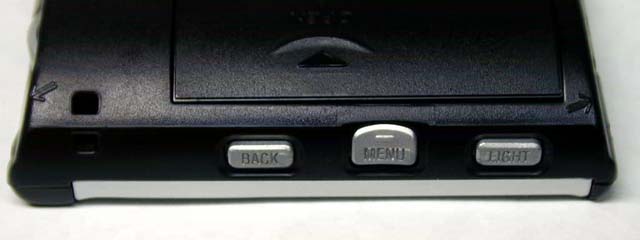 つまり、情報を選んで見るという操作は、親指によるジョグダイヤルの操作のみですべて行なえるわけだ。このほか、本体上部に3つのボタンがあり、それぞれ、「戻る(キャンセル)」、「メニュー(後述)」、「バックライトのオンオフ」となっている。「戻る」ボタンは、たとえば、フォルダの内部にいるときに、上位フォルダに復帰する場合や、メニュー表示を取り消すなどの場合に使う。