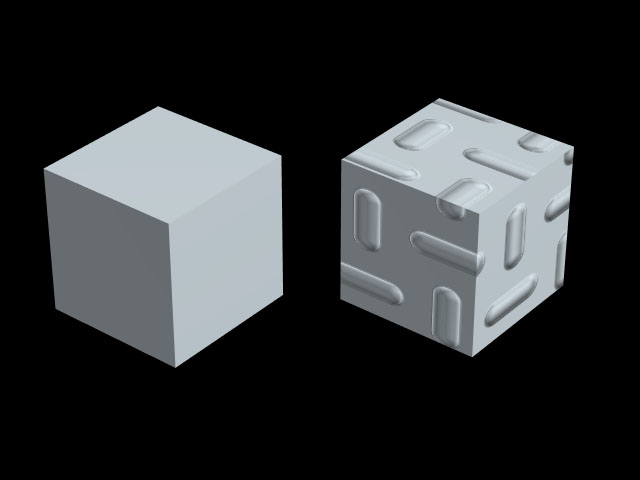 右:バンプマッピングしたオブジェクト |