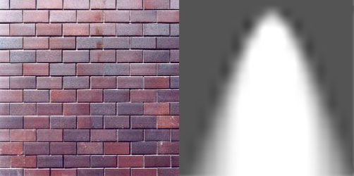 左:左が元の影のテクスチャ、右がその上に重ねられるスポットライト状の影のテクスチャ |