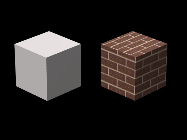 右:テクスチャを貼ったオブジェクト |