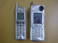 cdmaOne端末、C201Hと並べたところ。サイズは54×29×140mm(幅×奥行×高)、重量165g。いまどきのPHSとしては大きいと言えるが、画像電送も行なっていることを考えるとすごく小さいと言っていいかも |