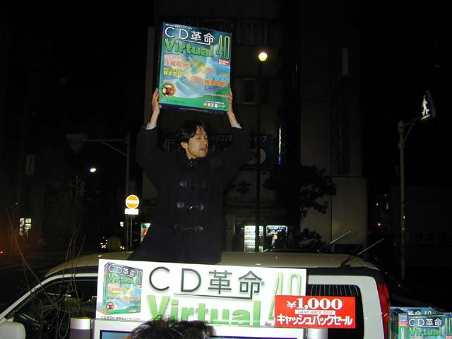 0時過ぎのLAOX前。CD革命Virtual4.0の宣伝。CD革命Virtualは、17日午後6時より、Windows 2000用パッチをWebページで配布開始した |