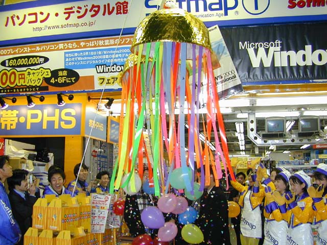 ソフマップ。0時、くす玉の割れた瞬間 |