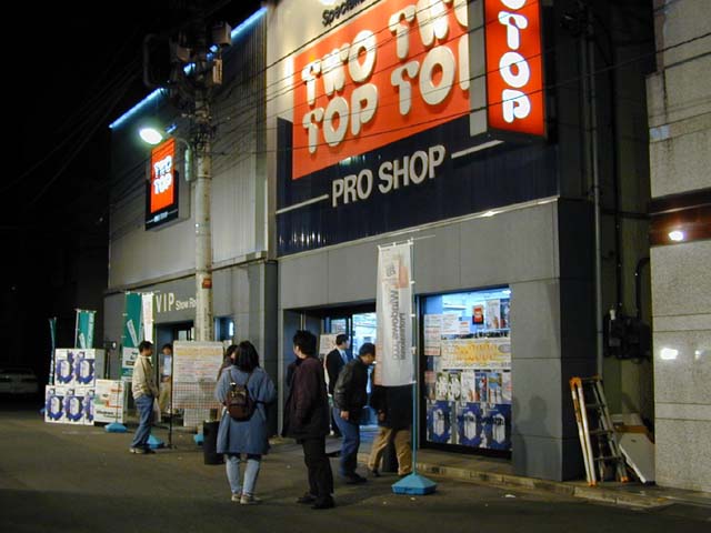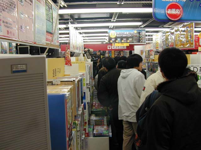 やっぱり寒いせいなのか、それとも世間の注目度がそれほど高くないのか、イベントにくるお客さんはさほど多くなかったみたい。Windows 95のときは秋葉原中が午前3時くらいまでお祭り騒ぎだったけど、今回は人気のゲームソフトを発売日当日に並んで買うひとたちって程度の賑わいかな。実際に深夜販売をしてる店もそんなに多くなくって、暗い街の中に、まばらに賑やかなお店があるって感じだった。今回はT-ZONEが深夜販売を一切しなかったので、どうも秋葉原全体が明るくならなかったんだよね。とはいえ、それなりに行列ができる程度にお客さんが集まったんだから、まずまずってところじゃないでしょうか。