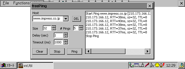 「vxUtil」は、PingやTraceRouteといったネットワーク関連のいくつかの機能が含まれているツール集。前述のようなトラブルが発生したときに、このツールを使えばトラブルの原因をある程度究明できる便利なものだ。「vxUtil」に含まれるツールはInfo、Ping、Traceroute、Finger、Html、Lookup、Quote、Time Service、Whois、Password Genの10種類。たとえば、Infoを利用すればWindows CEに割り当てられたIPアドレスを知ることができるし、LookupではDNSサーバーにアクセスし正しく名前からIPアドレスへの変換が行なわれているのかを知ることができる。