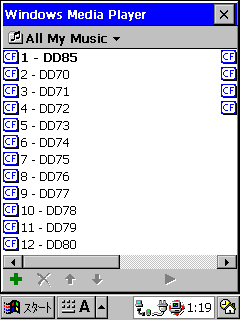 最初にWMPを起動すると、本体メモリやCFメモリカードに含まれているすべてのMP3ファイルやWMAファイルがリストアップされる。つまり、ユーザーはCFメモリカードのどのフォルダにどんなMP3やWMAファイルが入っているのかをまったく意識する必要がないわけだ。CFにMP3データを入れて、フォルダを選択して、さらにMP3ファイルを選択して…、なんていう面倒な作業は必要ない。