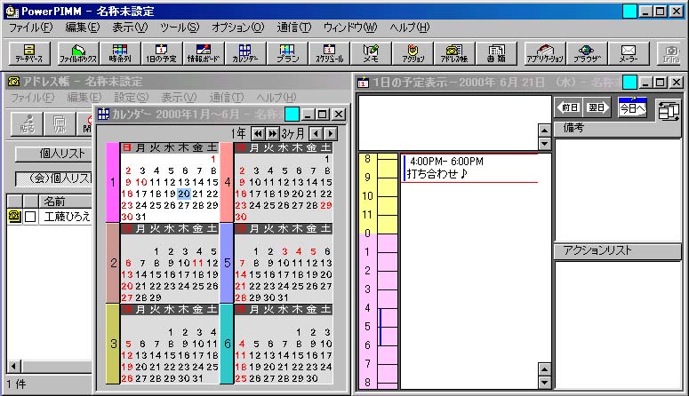 PowerPIMMは、シャープが出してるPIMMソフト。単体で個人情報を管理するために使えるのだが、売りは各種ザウルスとのかなりスムーズにシンクロナイズ機能を持っていること。ザウルス上のデータをパソコン上で編集するような場合には特に便利なので、俺はPowerPIMMを“ザウルスデータ編集専用ソフト”として使っている。