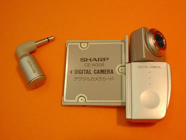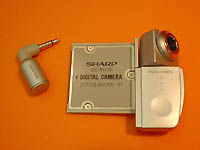 プラグインマイクとデジカメカード。この2つは同時に使えない(物理的位置が干渉して両方挿さらない)ようになっている。シャープによれば、デジカメカードを使うとバッテリを消耗するので、長時間録音の場合などを考えてわざとそうしたという |
