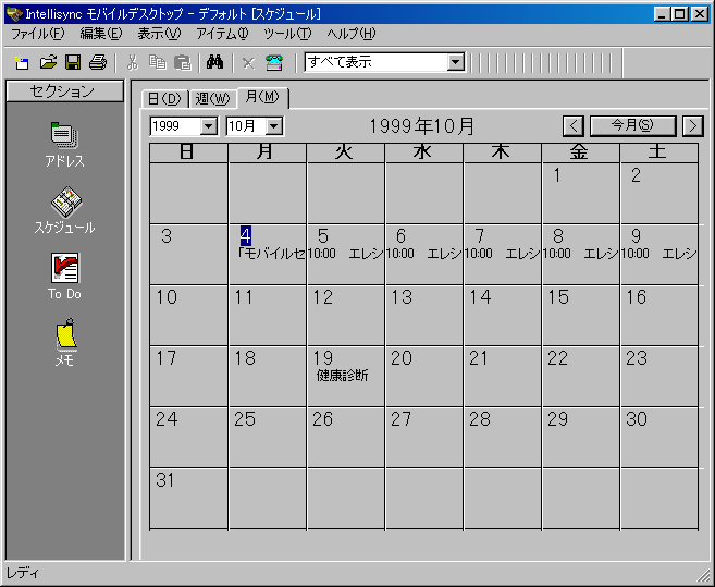 同ソフトには、EZwebの個人情報管理機能「EZ PIM」と同等の機能を備えたWindows用の簡易PIMソフト「Intellisync Mobile Desktop」も付属しており、アドレス帳やスケジュールの管理など、一通りの操作が行なえるようになっている。入力したデータは、Intellisync for EZweb経由で、サーバー上のデータと自動的にシンクロされる仕組みだ。