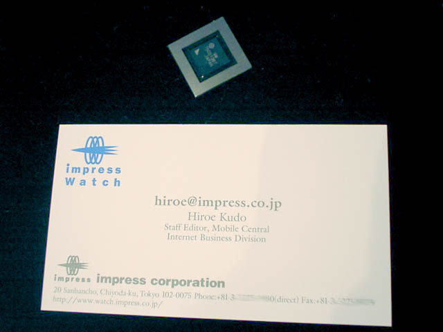 MPEG-2エンコーダーチップ。名刺と並べてみました
