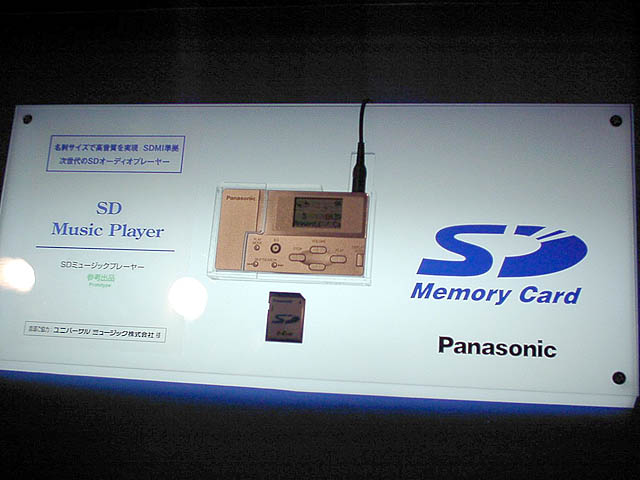 松下電器は、「エレクトロニクスショー'99」で、「SDメモリカード」に対応したSDミュージックプレーヤーの試作機を展示している。SDメモリカードは著作権保護機能を搭載した切手サイズの小型メモリカードで、2000年春ごろの発売が予定されており、発売当初は32MB/64MBの2タイプが用意される。
