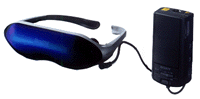 「グラストロン・ライト」のディスプレイ部は、0.55型18万ドットLCDを左右に各1枚使用。また独自のフィルターにより液晶のドットを目立たなくし、目の疲れの軽減に配慮したという。