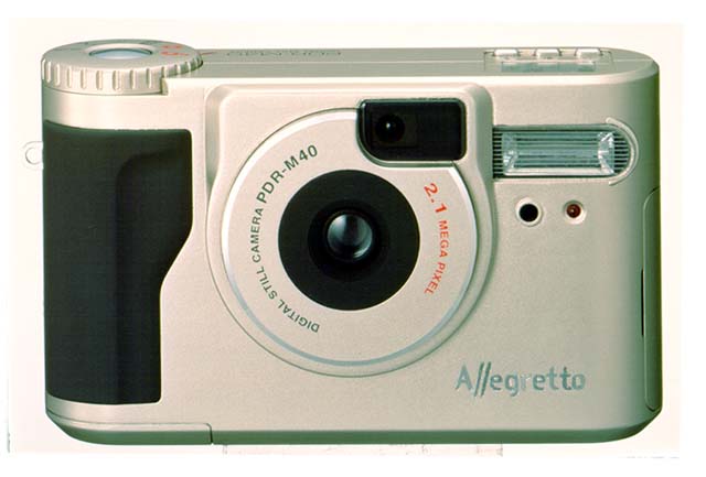 「Alegretto M40」は214万画素CCDを搭載、最長120秒(160×120ピクセル時)の動画記録ができる。筐体はAlegretto M4を継承したコンパクトなタイプ。撮影間隔はストロボ、プレビューともにOFFの場合1秒以下と、記録時間が短いのも特長となっている。また、約4コマ/秒の高速連写機能(1600×1200ピクセル時)、ひとつの画像で連続した動きを確認できる16画面マルチ連写機能を搭載している。失敗した画像を簡単に消去できる、独立した「消去ボタン」も装備した。