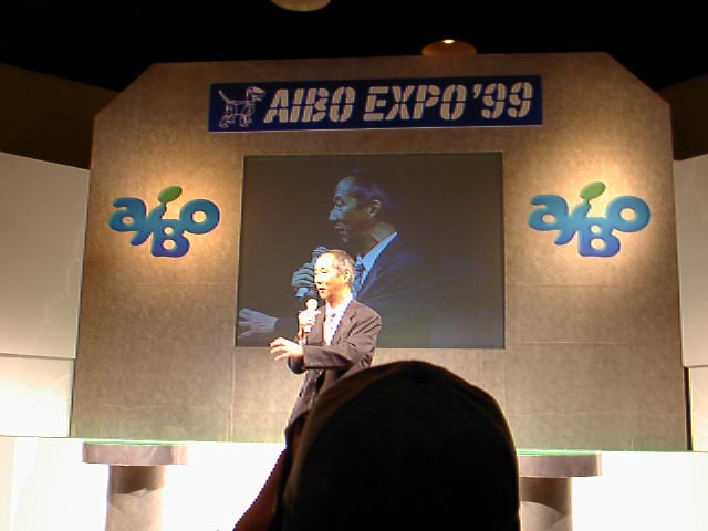 スクリーン中心のパフォーマンスが終わると、このAIBOを世に送り出したソニーのデジタル クリーチャーズ ラボラトリー所長 土井利忠常務からの挨拶と共に、前日フランスで行なわれた「ERS-111」の記者発表会の模様が報告された。「これまでヨーロッパで行なわれたどのソニー製品の発表会よりも盛況であった」とのコメントがあり、今回はじめてヨーロッパでも発売されるAIBOへの自信を覗かせた。また、土井所長からは「1980年代はコンピュータの時代、1990年代はインターネットの時代、次には AIBOをはじめとするエンターテイメントを目的としたデジタルクリーチャーの時代が来るだろう」との発言もあった。