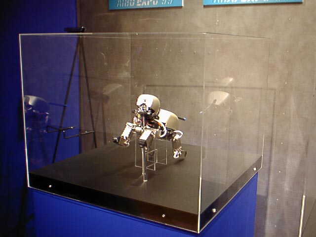 『AIBO EXPO '99』では、これまでAIBOに触れる機会のなかった方やオーナー向けに、さまざまな展示が行なわれた。さほど広くはない会場では、先日発表されたスペシャルエディション「ERS-111」が一般向けに展示公開されたほか、前モデル「ERS-100」やAIBOが製品化されるまでに製作された試作モデルなどの展示、AIBOオーナーが連れてきたご自慢の愛犬によるレースなどが行なわれた。