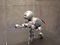 その他にも、競技のために開発された技術のデモが行なわれた。1つはAIBOをブランコに乗せ揺り動かすと、内蔵された加速度センサーや角速度センサー、視覚を元にタイミングよく重心移動を行ないAIBO自身がプランコを漕ぐもの。もう1つは、AIBOを乗せた床が斜めになっても、内蔵センサーからの情報により、4本の足を自在に畳むことによって、本体を水平に保とうとするものであった。プログラミングによってAIBOは、非常に高度な自律動作を行なうことができることをアピールしたデモンストレーションとなった。