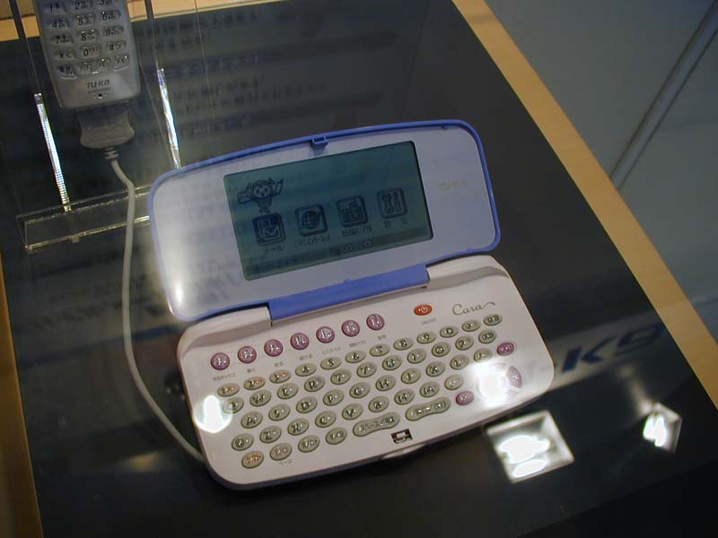 中でも注目は各キャリアが展示しているメール端末。NTTドコモがもうじき発売される新型メール端末を2機種展示しているほか、J-フォンが来春発売予定のメール端末を参考出品している。また、IDOとDDIグループのブースではツーカーセルラー東京が先月25日に発表したメール端末「Cara(カーラ)」と、松下が先月7日に発表した小型カメラ付きのメール端末「POCKET・E」が展示されている。さらに、日通工のブースでは、先月26日に発表されたPIM機能搭載の小型PHS「FreeShot」が展示されている。