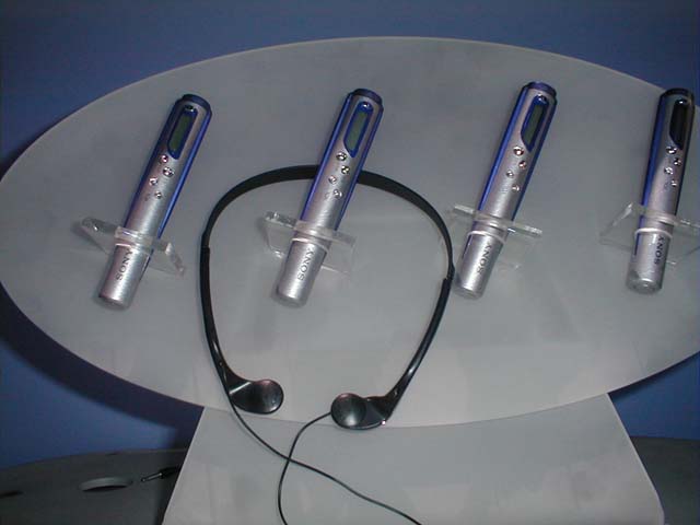 今後登場が予想されるメモリースティック対応製品のモックアップも多数展示されていた。そのほか、米国ではまだ発表されていないVAIO PCG-C1XEの英語キーボードモデルが参考出品されていた。また、15日(米国時間、日本では16日)に発表されたばかりのVAIO専用周辺機器「MusicClip」の展示も見られた。