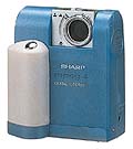 重量約240g(スマートメディア、乾電池含む)、サイズは78.8×42×88mm(幅×奥行×高)。電源は単3アルカリ乾電池×4本または別売の専用ACアダプタ。バッテリーによる駆動時間は同梱のアルカリ乾電池で約60分、ニッケル水素電池(1450mAh)で約100分。