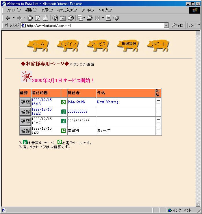 同サービスは、来年2月1日よりβテストが開始される予定。現在、無料モニターの募集を行なっている。同社では、基本的に広告を表示するなどして無料で運営したいが、有料になったとしても月500円程度の低額料金でサービスを提供できるとしている。今後、iモードへの対応のほか、FAXの送受信サービスやメールの読み上げサービス等を導入していくという。