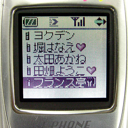 アクセス方法は、J-フォンの「Jスカイウェブ」メニューから、「便利リンク」→「秘密の電話帳」。