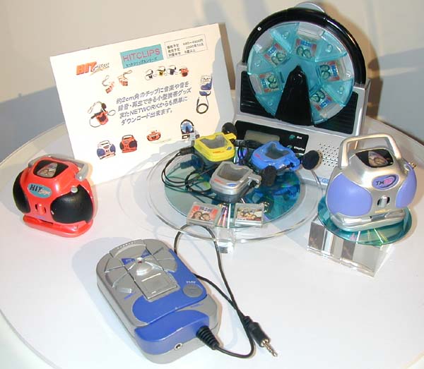 「HIT Clips」シリーズは独自のフォーマットを使うポータブルオーディオプレーヤー。2cm四方程度の独自メモリーカードに30秒から120秒のモノラル音声を録音できる。メモリーカードは1枚680円で音質はアナログテープ程度。これを再生するプレーヤーは小型タイプとラジカセのミニチュアタイプがあり両方とも1980円。ピンプラグからのアナログ音声入力をメモリーカードに録音するレコーダーは4900円。目覚し時計にもなるジュークボックスタイプのプレーヤーが4900円。それぞれ10月に発売予定としている。