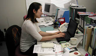 今回紹介する佐藤美鈴さんはそんなプレノン・アッシュの最も新しいスタッフだ。入社は去年(2000年)の10月。ホームページの人材募集ページを見て応募し、念願の映画会社に就職となった。