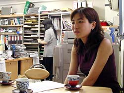 「将来は、映画の買い付けがしたい」と武田さんは言う。そのためには、映画の世界を知らなければならない。「作品の買い付けをするにも、売り方を知らなければ何を買えばいいのか判断するのは難しいと思います。作品の売り方を身につける為にも宣伝の仕事を学びたいんです」。入社を決めるときに意識していたことを、この会社で学べるのがとてもうれしいと言う。 リベロは、カンヌで話題をまいた衝撃の韓国映画『魚と寝る女』、大槻ケンヂ原作の『STACY』と多彩なジャンルの作品を擁する。さらに、ジャッキー・チェンとクリス・タッカー出演の『ラッシュアワー2』も控えている。「今回は、香港を舞台にクリス・タッカーとジャッキー・チェンの凸凹コンビもパワーアップしています。共演にはジョン・ローンやチャン・ツィイーの豪華キャスト。文句なく楽しい作品ですよ」。自分の言葉で伝えようと努める武田さんは、笑顔で作品を紹介してくれた。 寝る暇もないほどの多忙な日々を過ごすなか、雑誌に作品の紹介記事が掲載されたりと、自分の努力が形になる喜びも知るようになってきたのが嬉しいという。「映画の買い付け」という夢を実現するために、彼女は今日も奮闘する。