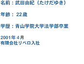 武田さんが映画に目覚めたのは中学生の時に観た『プリティ・ウーマン』がきっか けだ。物語が進むにつれてジュリア・ロバーツが綺麗になっていく姿に感動したそうだ。その後、高校2年生の時にアメリカに留学した。「ホームステイ先の家族と一緒に『アポロ13』を観たのですが、ロケットが無事に帰還したシーンで全員が涙を流していたんです。これは衝撃でした」。言葉が違っても、映画は世界中の人々に同じ感動を与えてくれることを身をもって体験したのだ。映画の持つ力強さに気付いたとき、武田さんは映画の仕事に就きたいと考えるようになった。 高校3年生の時に帰国し、青山学院大学へ入学した。「映画関係の仕事につきたい、そして英語を活かせる仕事がしたい」という留学当時からの気持ちを実現すべく、就職活動は映画関係の企業を探した。そして、知人の紹介でリベロにアルバイトとして入社することとなった。