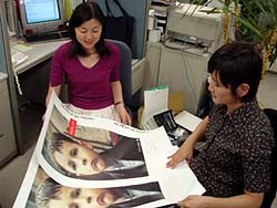 「同じ仕事をしている日はほとんどないです。毎日その日によってやることが違ってくるんです」と杉山さんは言う。例えば、今日。『LOUISE(TAKE2)』のパンフレットを8月17日までに納品しなければならず、朝から色校、文字校などの校正作業を行い、『がんばれ、リアム』の予告編制作の進行管理をやり、その合間に各媒体に対して、電話による宣伝活動のアポイント取りを行っていた。 そのほか、前出のように、インタビューのセッティングや試写会現場への同行もする。「確かに忙しいんですが、それも日によって違ってきます。今日は・・・、なんとか早く帰れそうです」と笑う。