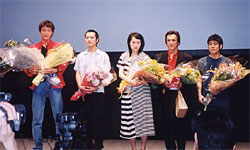 上映に先駆けて行われた舞台挨拶には、熊切監督と出演者4人が登場。「この人で情けない中年男の恋愛映画を撮りたかった」と監督が出演を熱望したという寺島進、オーディションで抜擢された新鋭、菊池百合子、前作『鬼畜大宴会』に続いての熊切作品出演となる澤田俊輔、ウルトラマン・ティガなどのスーツアクターとしても活躍の権藤俊輔の4人。緊張した面持ちで必死に挨拶する初々しい菊池をはじめ、少し照れた様子の5人にはファンから温かい拍手と花束などが送られた。