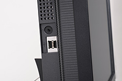 USBアップストリーム端子も2系統持っており、これは2系統あるPC入力のそれぞれに対応したものになる。つまり、DVI-D端子で接続したPCからのUSB接続と、ミニD-SUB15ピン端子で接続したPCからのUSB接続を別系統として取り扱えるのだ。FlexScan HD2452W側面にはUSBダウンストリーム端子が2系統あるので、つまり、ここにキーボードとマウスなどを接続すれば2台のPCを1セットのキーボードマウスで使う「PC切り換え機」的にも活用できるというわけだ。