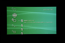 FlexScan HD2452Wの入力切換をD端子のVIDEO2へと切り替え、続いてPSPの電源を入れるわけだが、このままではPSPの本体液晶画面に映像が表示されるだけ。FlexScan HD2452WにPSP映像を表示するためにはPSP側のモニターボタン([♪]ボタンの左にある[□]ボタン)を長押しする必要がある。