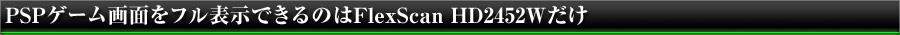 上下に若干の黒帯が横断するが、これはPSPの画面解像度が480×272ドットで16:9なのに対し、FlexScan HD2452Wの画面解像度が1920×1200ドットで16:10のため。黒帯が表示されるのが正しいので余計な心配は無用だ。