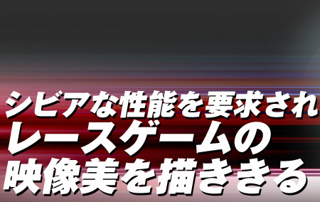 実際にキャリアモードをプレイしてみたが、奥から手前への高速3Dスクロールの描写力はかなり高い。もちろんゲームグラフィックス側でわざとブラー効果をかけている部分もあるため、視点に近い位置の情景はスピードに比例してブレがでているが、これはこれで正常。プレイ中はブラーの少ない最遠方の情景を見るわけだが、これが指数関数的に速度を上げて迫ってくる表現がしっかりと描けており、緊張感を高めてくれる。応答速度の遅いモニターでは左に右にと、コーナーが連続するときには糸を引くような残像が見えるが、FlexScan HD2452Wではそれが全くない。