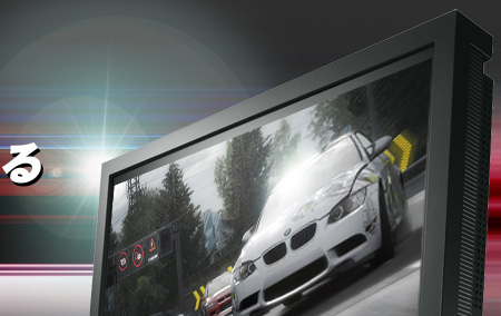 そして、最後に、余談だが、ステアリングコントローラとFlexScan HD2452Wを適度に寄せてプレイすると、24インチという画面の大きさが、視界一杯ぎりぎりに映像を捉えられるのでちょうどいい。これより大きいとステアリングコントローラに寄せてプレイするにはでかすぎるし、かといってこれより小さいと迫力が物足りない。24インチというFlexScan HD2452Wの画面の大きさは、パーソナルなゲームプレイにはおあつらえ向きな大画面感と臨場感を届けてくれるのだ。